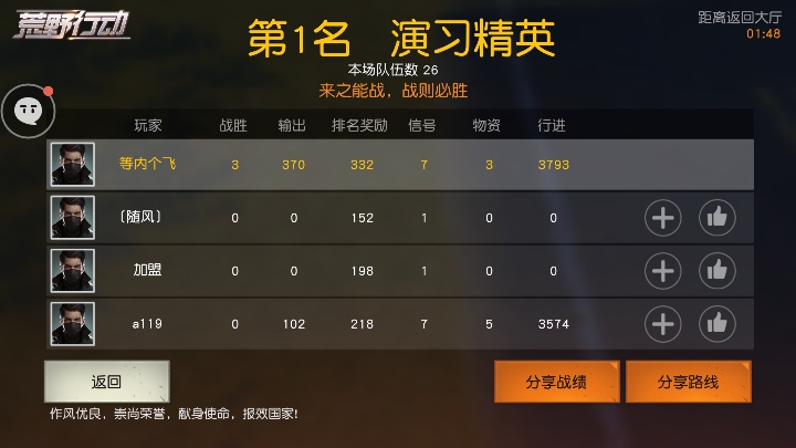 圈特别小时一定要第一时间到圈内,因为再红圈外血掉的非常快,本人好几次都是还剩三四个人然后圈特别小我在白圈里莫名其妙就赢了。