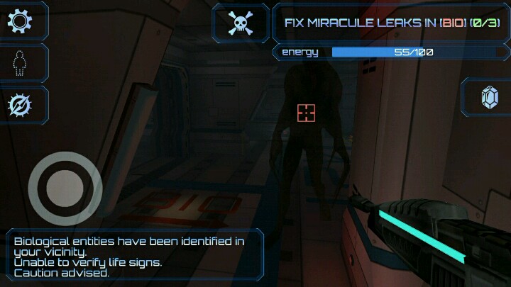 游戏前两关有灯光,环境比恐怖之眼舒服。柜子里有东西,“晶石”一定要收集(个人观点。)。要避开监控射线和像烟雾一样移动的红色骷髅头,否则人形黑影就会出现。在墙上挂有能量电池,可补充能量(打开通道和某些开关以及开枪需要能量,但不是生命值。),当能量电池能量不足50点时会自动补充至50点。在某些地方会有自动炮,当你进入范围内,它就会瞄准你不停开炮,直到你走出射击范围或倒地。在第二关中自动炮附近会有重要东西,因此要打掉它。当你打掉监控或自动炮时,屏幕上方的骷髅头图标会闪烁并发出嘀嘀声,提醒你黑影要来了,图标会越闪越快,这是最让人紧张的时刻,如果周围有三面都是墙的地方或墙角,最好躲在那里并将瞄准十字对准外面,这样可保证黑影会出现在视野内(如果墙的另一面有空间,黑影可能会透过墙攻击。),当瞄准十字变成红色,点击它进行攻击。如果受到攻击时没有看到黑影,则要转身进行攻击。在某些地方会有对话框,比如某具尸体上面和某个桌子上面,其中可能会有开门密码(四位数字,其颜色代表应用于哪个区域。)在第二关的绿色区域(地图上可见。)的最上方平台上可以看到左、右下方各有一台自动炮,必须打掉(个人观点:在最上方平台上打掉一台后走到另一边居高临下打掉另一台,之后会出现一个打好几枪也打不死最后把我杀死的黑影,不过……之后我竟然复活了。),之后找到并打掉三朵旋转“铁花”……由于我不懂英语,使得游戏失去了许多乐趣并增大了难度,所以,学好英语才能玩好游戏。