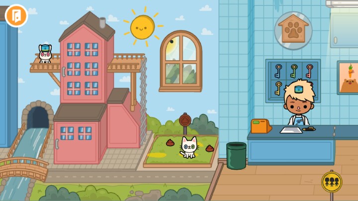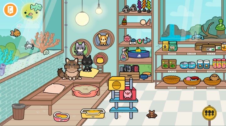 7.在住宅里和宠物公寓里都有一个泥坑,把动物放进去动就会变脏,但是旁边有一个水盆子,里面有水把动物放进去,动物就干净了。