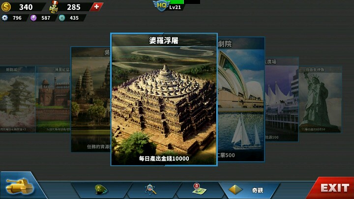 小细节会引发大事情的开端。新手快中端时期有个建筑物,每天可以领1W金币。这里强烈要求新手把这个景观建好,每天1W金币可以让你的军团实力扩大,然后入侵、创奇人物这些会很方便去弄。(建议不要勋章贸易弄工业)