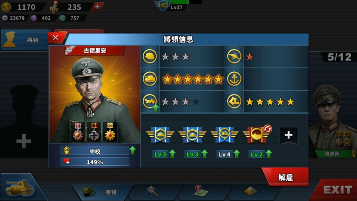 将领方面世四还是对新手有点作用的,这里先讲。买将领方面,我强烈推荐梅塞。梅塞:四坦、装甲突龙1、人海战术1、谣言1。装甲突龙,增加装甲的进攻的伤害,人海战术可以增加附近的军事单位进攻的伤害(1格内),谣言可以有几率减弱地方士气。因梅塞价格很低,550勋章。所以这里强行推荐。其他的,我建议买里布、纳赛雨、瓦图京(接近边缘,不过还是值得)。剩下的勋章存着,留着买传奇人物(折扣全打完)。(海军空军指挥官新手一定不要买!等以后打完折买道丁和邓米茲)