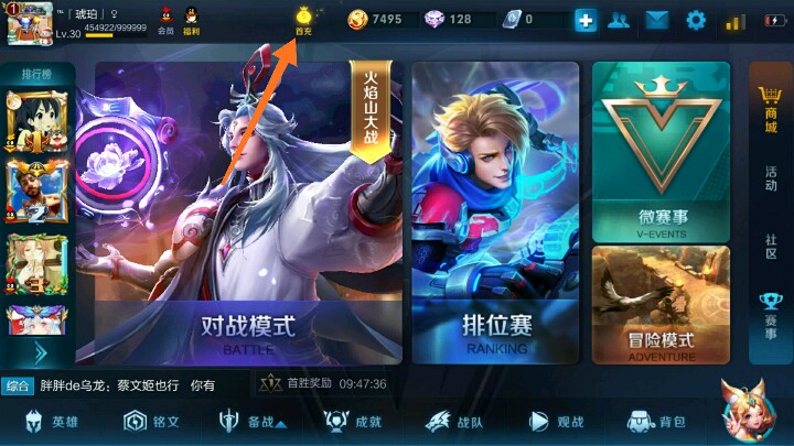 各位新手都有那么首充推荐就在王者的界面上方那里有一个首充的标识!(如图一)!