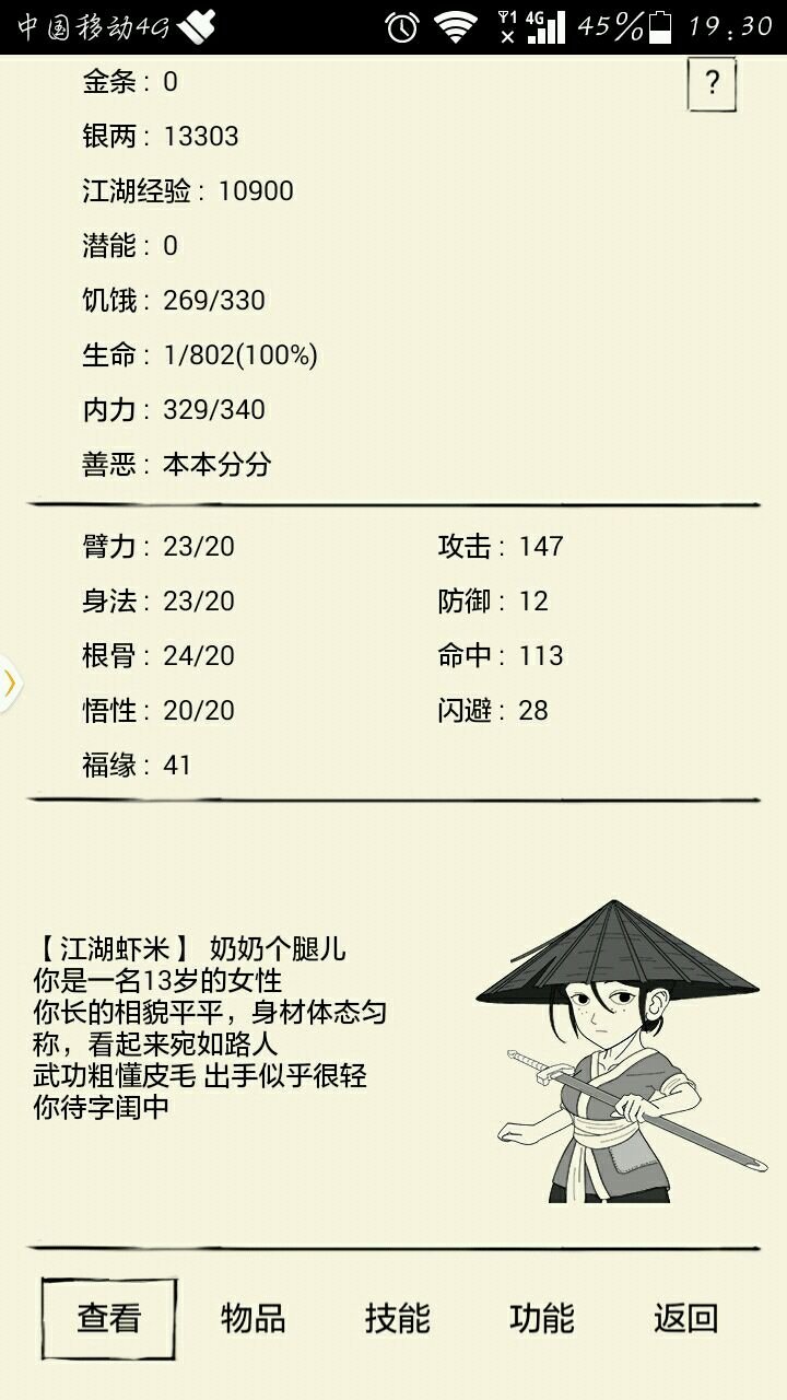 3. 跟别人打架之前,先查看一下他们的武学评价,不看的话很容易被打死。
