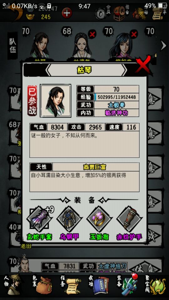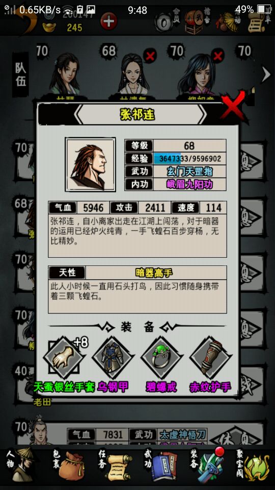 绝世内功:咳咳这个也不推荐有两点原因一是那个莽gu神功,30%反伤太渣,而且还要打麒麟真人。