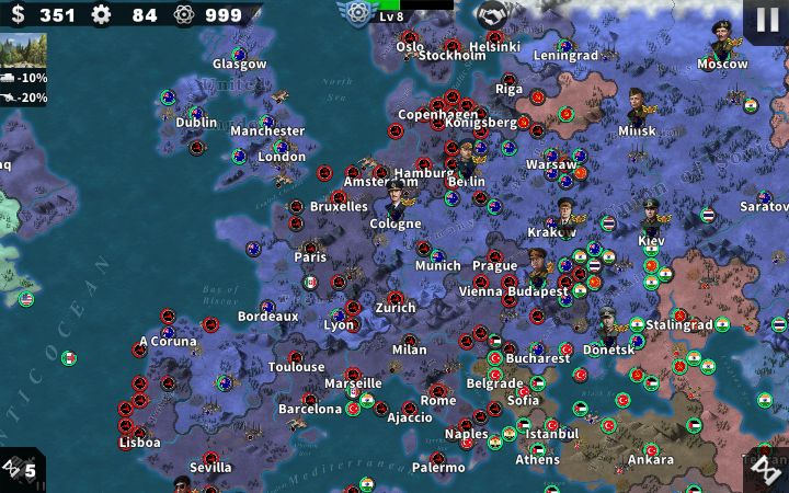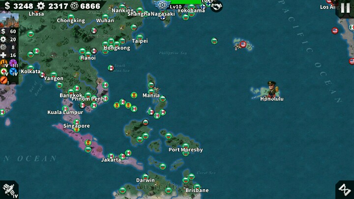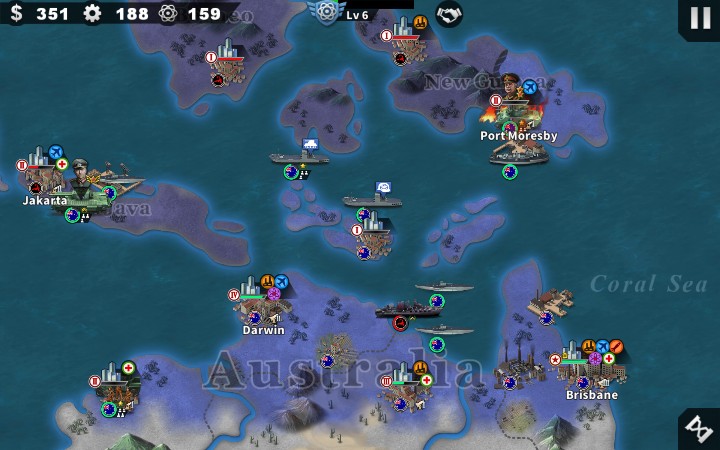 这些恐怖分子来自世界各国,并在各大国有高级将领驻军,守军最薄弱的地区是中东和北非以及南亚,而且这些地区的敌方城市小容易攻破,由于恐怖分子的海军太强大,为防止敌人在广阔的太平洋玩舰海,我选择了澳大利亚,这阶段的科技已经很先进了,几星国初始将多少已经不重要。
