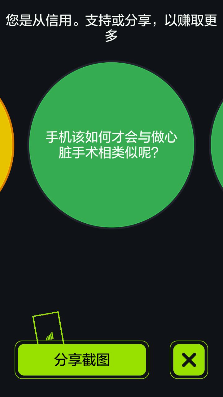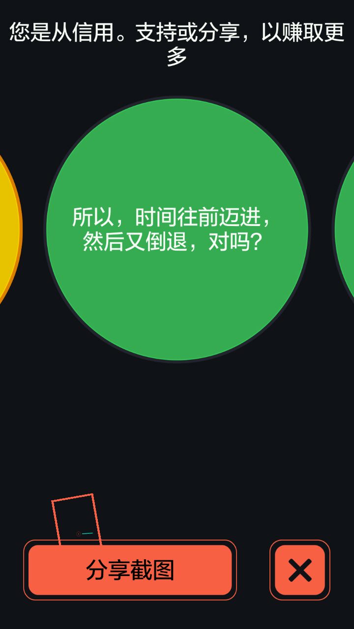 还有个黄色的圆就需要用到手机屏幕侧的光敏传感器了,用手指把光线全遮住,屏幕会暗下来,不急,等6秒再移开,关卡里的黄色小球就会弹起,过关。