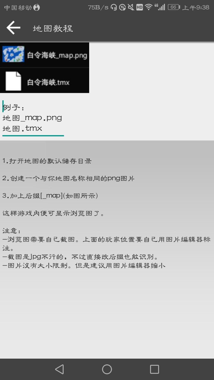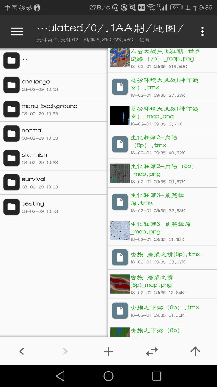 搞了两个小时,终于学会怎么样加载网上下载的地图了!!以下是教程,如有疑问可在楼下回复,我会不定时回来看1.直接在手机内部存储设备创建一个名为《rusted_warfare_maps》的文件夹(图一)2.把从网上下载的地图解压缩至《rusted_warfare_maps》,注意!地图必须直接放在这个文件夹里(图二)3.只有尾部格式为tmx的地图才能加载使用然后进入游戏就可以加载使用地图了!