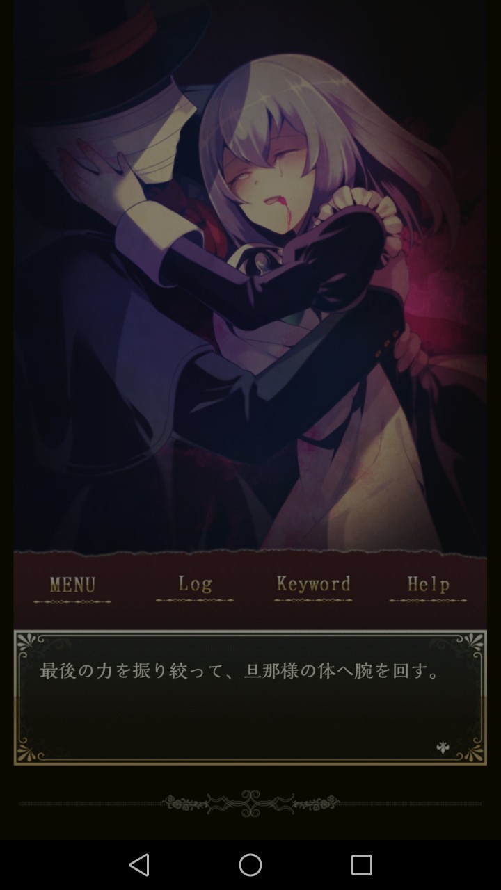 一开始以为是这个宅子里的人不正常,(的确不正常,详情请看支线end。也就只有黑皮正常地想并成功带你出逃,不过因为如此而两人自责认为要下地狱。这个详情请看扭曲的恋情。)结果只是我(女主)不正常。