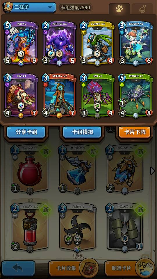 一个卡组高消耗的牌不可多,尤其在5以上,最多两个,后排卡和前排卡要区分清楚