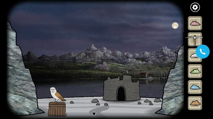 11.退出房屋,调查左下角的猫头鹰,将水蛭放进嘴巴里然后抬高两侧的翅膀将水蛭变为血水,四只水蛭都变为血水以后可以在猫头鹰的嘴巴里得到钥匙。