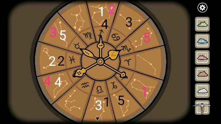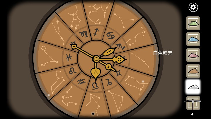 5.进入神庙,右侧的柜子将图案调整成下图的样式,打开柜子获得蛙笛。