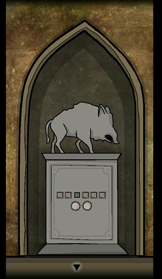 5.进入神庙,右侧的柜子将图案调整成下图的样式,打开柜子获得蛙笛。