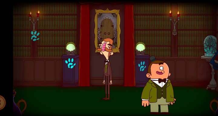 过度一段动画,电话响了,去接电话,接了个调查他老板的任务。捡起右下角红色的保险丝【应该】,点他刚刚在工作的电报板,将保险丝放入右边的凹槽,看右上角的小册子将分别插到本子最下行告诉的位置,然后打电话一直打到让三个人买你的肥皂,完成工作后去找老板盖章。上楼后敲门进去发现老板不在,点击八哥的画像发现后面一个保险柜,点击书桌点书,翻到第二页发现上面的单词“hELL”倒过来看就是数字7734。输密码到保险柜,打开拿到红墨水【下面是一份情书我没拿9_(:зゝ∠)_】倒回书桌将红墨水放到右边的打印机,将工作单放在上面然后就盖好章了。出办公室往左走出去,将工作单给门卫他才放你走,点门卫旁边的铁门出工厂。往左走,再往左上角走,到老板太太的家一扇大铁门前面。点对讲但是坏了。点击左边的海报,将EYE移到第一行,HAM移到第二行,BIRD,TRAM移到第三行,FIG,DULL移到第四行。摆好之后她看到了知道我是谁了就打开了门。进去之后跟夫人对话,然后再去办公室找线索,但是回去的时候撞到了杀人犯。杀人犯逃了,又被目睹误成了嫌疑人,然后不知道福尔摩斯从哪窜出来说我是凶手然后我就被抓到监狱里了╰(:з╰∠)_第一章完。