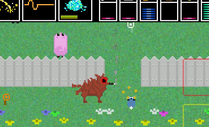 回到左边来,在有“dig”牌子的空地上挖坑,找到前辈们埋下的骨头和狗狗money~饿了就到旁边烧烤架那儿烤个肉吃,一次50,渴了累了就去那边自动售货机搞罐10块钱的可乐<(*ΦωΦ*)>