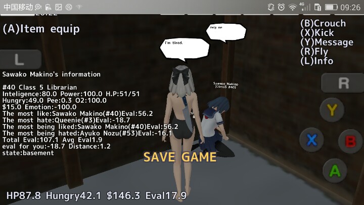 别哭别哭,站起来撸ヽ(・_・;)ノ喂喂,别正面打呀,徒手更不行\(〇_o)/打僵尸最好的武器是武士刀和斧子(武士刀在校门口,斧子在校门、shop前和保健室床底下各有一把),然后在僵尸背后(打女僵尸尤其好用)攻击。僵尸的尸体可以拿去小卖部卖钱噢٩( 'ω' )و 南僵尸的头可以踢下来,吃了后也会变僵尸(눈_눈)