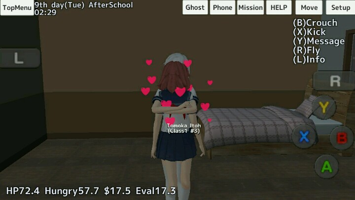 按A跟NPC聊天,Y是夸奖,B是骂Ta(哇当着面骂666),请到一定的程度之后就可以交换电话号码或者表白(*'▽'*)♪,放电话号码之后,手机里就会存入他的电话号码,可以查看时间线和呼叫。选择呼叫如果没有什么事Ta就会跑过来,但是也有几率会说Ta自己很忙。恋爱的话,可以亲亲,一起睡觉,跟谁时候可以一起骑车开游轮,有时这会跑过来对你说“ I love someone”Σ(|||▽||| )记住亲时不能被风纪委员和老师发现,不然会被抓