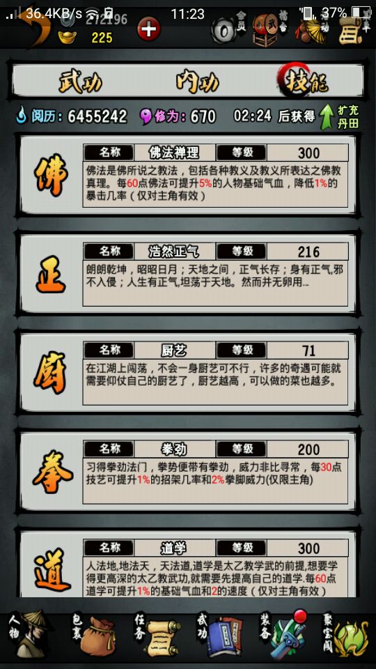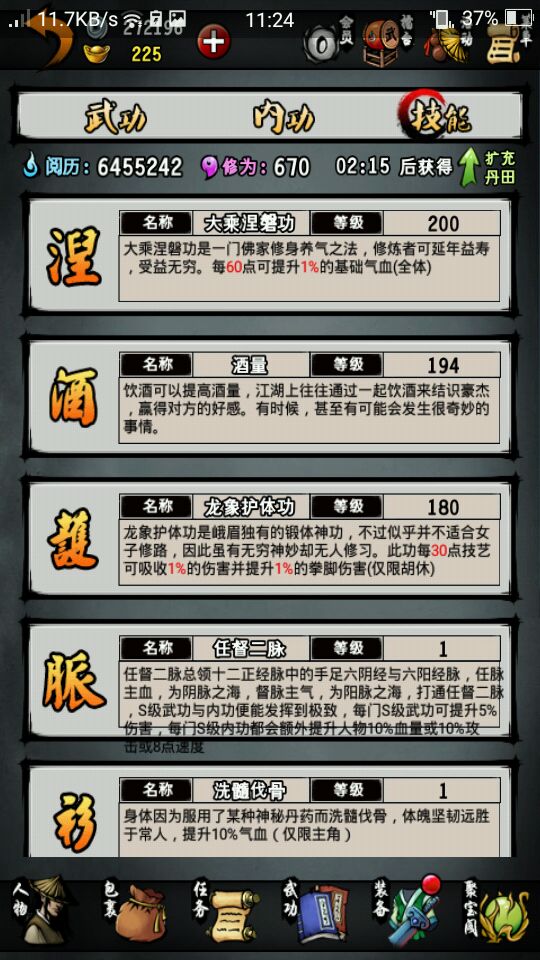 正气200后才是真正的考验人的意志力。200点后只能打华山地图里的3个怪来提升点数。打9个升1点。你如果签到的紫霞还没有拿的话,就把正气升满拿紫霞后,在拿签到的。不然只有一本对以后的高手很难打。其他的技能都尽量升完。