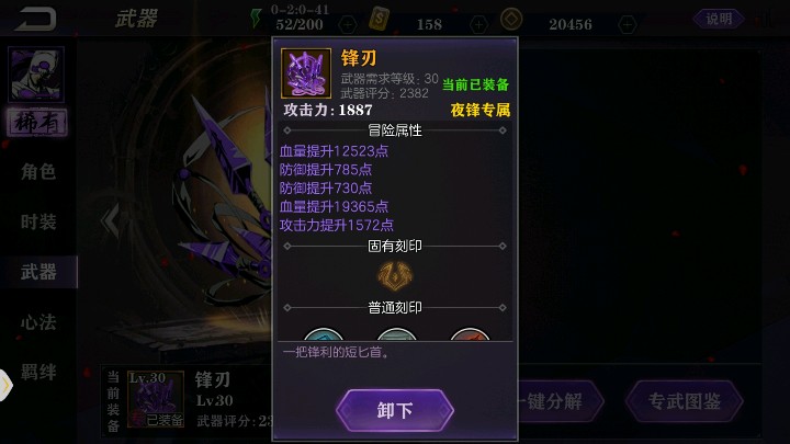 小枫又来给大家推荐介绍游戏了――影之刃2。墙上已经介绍的小枫就不介绍了。接下来是游戏主页面的各个功能简介,工坊建设、故事剧情、英雄酒馆和出征。工坊建设通俗说就是团队加成,给你的全部英雄增加属性,需要等级和金币。故事剧情分为魂篇和左殇篇,魂篇的普通模式除了主线剧情还有乱斗和列传,高手模式是加强版的主线。乱斗可以获得技能点,列传可以获得英雄碎片(前提是拥有英雄,碎片可用于英雄升星);左殇篇的普通模式会产出左殇碎片(一次性),高手模式可刷左殇碎片。乱斗和列传我几乎是每天刷,积少成多。英雄酒馆就是抽英雄,还有兑换碎片、时装的功能。出征分为五种模式:团队强敌、秘境探索、无尽试炼、修罗战场、里武林·魔境。团队强敌产专属武器(手动刷);秘境探索产羁绊之魂和羁绊之书籍(自动刷);无尽试炼产各种,第一次手动刷,之后可扫荡(50金券),一天一次刷新;修罗战场有独立排名和商城,区别于主页面,自动刷,排名上升奖励【丰厚】,每天5次机会,不可连续打,有冷却时间;里武林·魔境这个我还没达到战力需求,暂时不知,小伙伴可补充。未完占楼,下附截图。