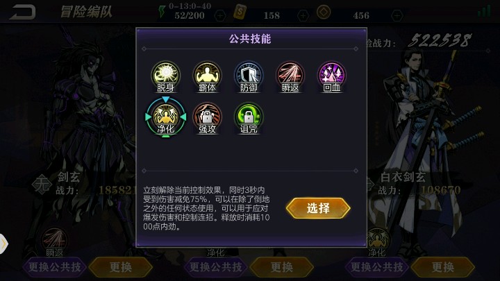 英雄属性分为剪刀锤子布和无四类,互相克制,无不克也不被克。剪刀称为侠客,可跳跃,摆脱技能僵直;锤子称为战将,有护盾条;布则分为两类,一称之为术者,二称之为医者,四次技能充能后,下一技能无冷却释放;无称之为虚无,自动充能虚无能量,满时5秒内免疫所有伤害,俗称无敌。