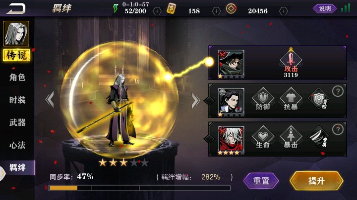 每个英雄都有独立的养成机制,分为角色,时装,武器,心法和羁绊。角色就是升级技能;时装一为改变外貌,二为增添属性;武器则有专属武器和通用武器;心法就像每个人多带的一个被动技能,羁绊则是与其他英雄的羁绊与加成。