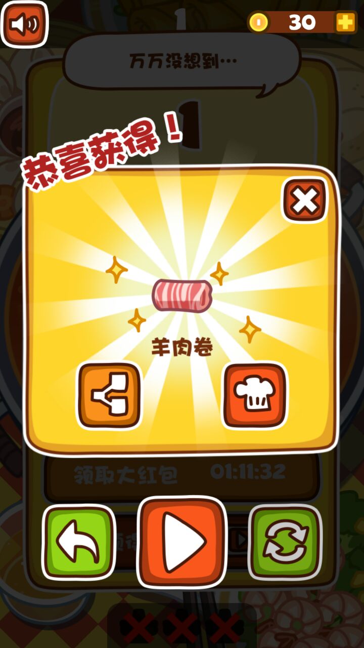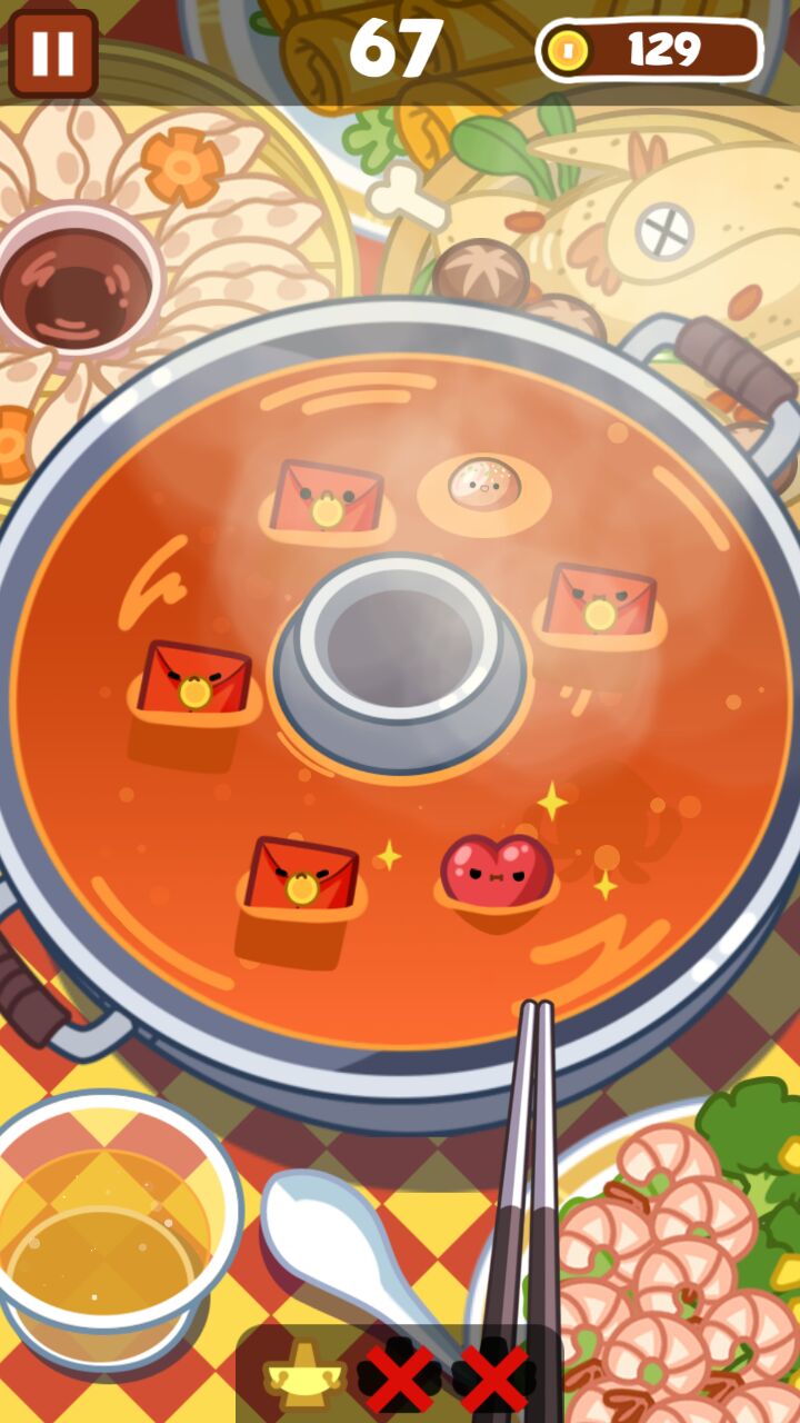 一开始五六分的时候大概就会有元宝,元宝一个加5金币。再往后面的时候,会有红包,6到10金币额随机。金币、红包、心❤出现的时间会比一般食物长。