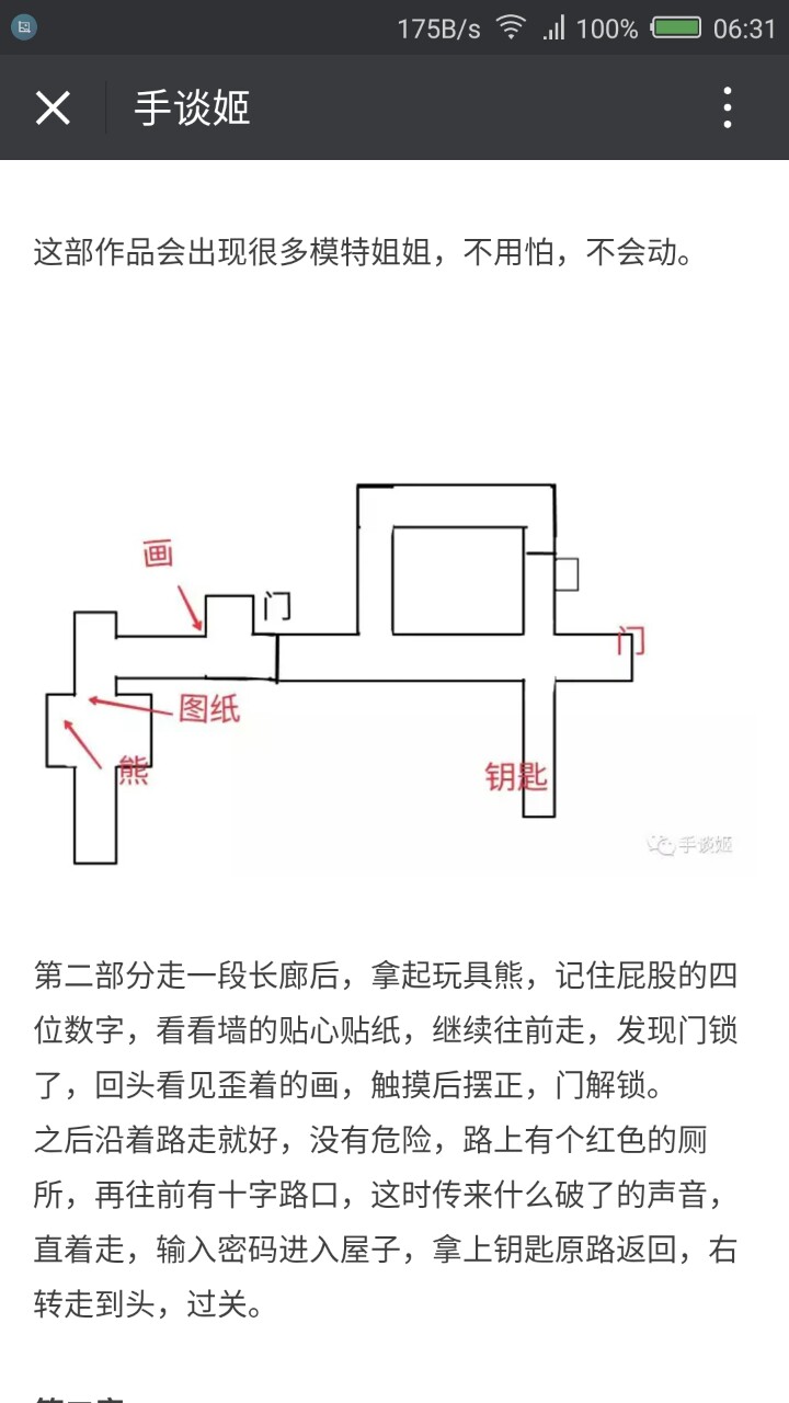 第二章先进正面的门,有个小女孩往右跑过去(引导?)往小女孩方向走到尽头,茶几有张纸写着25。往回走传来音乐,去前台一看多出个模特。