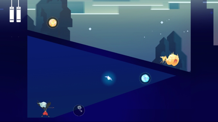 研究了好一会,考虑的完全都是角度问题,角度不对是上不去的,故事貌似是这样子——天狗当年被黑化,最后幡然醒悟,然后为了赎清罪孽,然后踏上了收妖之旅。这游戏真的让人吐槽的槽点很多啊!首先,这狐狸妖怎么那么漂亮!撑起了整个游戏的画风!然而我们的主角——是一个丑到不能再丑的戏剧人,认了吧!这就算了,这个游戏最虐的就是——纯纯的靠角度!一到二关很好过的,然而剩下的……我就只能笑笑了,因为这个角度很正确,误打误撞蒙逼之下的我居然过了,神奇吧。接下来教大家怎样玩这个游戏!首先画风是很不错的,个人偏爱妖,因为真的是可爱到不行不行啊!我们的主角,你是怎么下得去手的?都说了,这个游戏是纯纯的靠角度,方向感不好的人还是慎重吧!玩法是很朴素简单的,简单菜到不要的教程,压根儿没啥用【摊手】好不容易琢磨出来——其实就是这样,要去收服妖,看到屏幕上那些小云了吗?其实那是气啦,有不同的方向,向上吹的那个,就是能把我们主人公弹到很高的气,首先声明一下,高度绝对不用担心,可以从屏幕下弹到屏幕上再弹回来!向右吹的小云朵,自然是向右吹,吹得远不远也不用你担心,它会远到从屏幕右边吹到屏幕左边然后再飞回右边来!接下来就是角度问题了,选择一条合适的路线,继续调整,然后失败n次【啪的一个反手耳光】不断的调整,那种一毫米一毫米调的那种!总会成功哒!看到那些发光的银云了吗?那是线索,至今都没有凑齐,刚刚玩十来分钟吧,匆匆来上攻略了。故事背景貌似不正确,纯属靠蒙,游戏的耐玩程度绝对是五颗星!还是很推荐的,性格易暴的人可以拿这个来玩,不过手机既然内存大又要结实,不经摔【啪啪两个反手耳光】非常耐玩的游戏!我收下啦,很不错呢,推荐大家下载哦。哪里有过不去的关卡,告诉我,我把大概角度发给你,剩下的就自求多福慢慢调吧!角度游戏,非常虐,不过,我喜欢(*¯︶¯*)