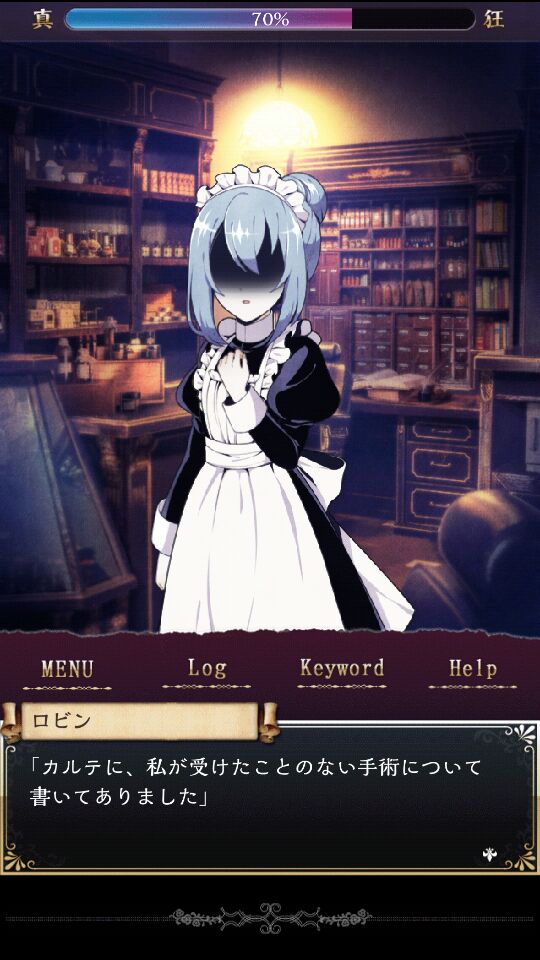 (进不去游戏的同学可以试试下载谷歌商店)主线结局攻略ED6:真狂指数在85%以上ED7:真狂指数在16%到85%之间ED8:真狂指数在15%以下一共有9个结局(包含7个坏结局,一个真结局,一个“番外”),我就天真地全部打出来了,最后发现还有两张cg居然要购买,坑爹呀~(╥╯^╰╥)算了我手已经废了ヘ(;´Д`ヘ),所以连瞎扯时间也懒得整了,大家凑合一下看点图吧,,,⊙︿⊙一楼继续......