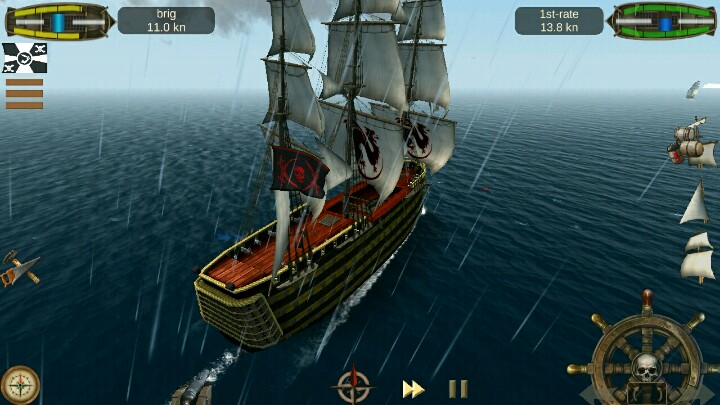 为啥这个游戏要设计两个船帆呢?其实船帆的使用也有讲究,比如在你转向左边时,你可以把前面的小帆关掉,以增加转向速度,但是在转过风向时,需要转换,就是说把小帆打开,大帆关掉,也就是反向操作。然后一个漂亮的360度旋转就完成了!