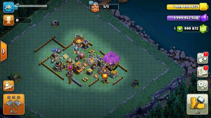 再来说说怎么发展八本。七本时法师塔是4级,迫击炮5级,加农8级,箭塔8级。如果像我一样都满了的话,一到八本,把加农和箭塔速生9级,之后把法师塔和迫击炮弄满,最后再把加农和箭塔升满。