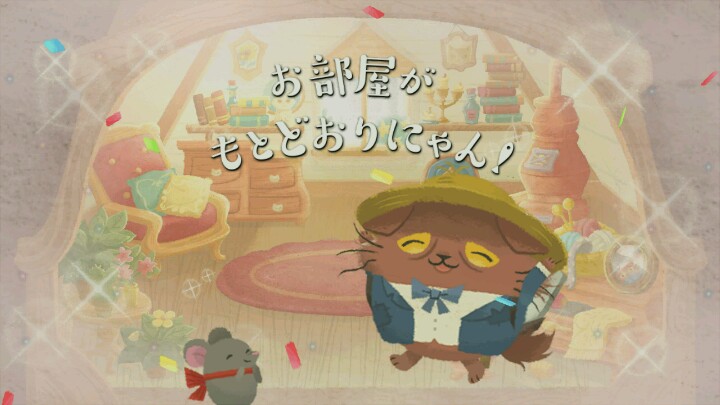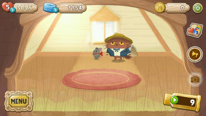 ●主要就只有一个——玩连连看。它会提示你怎样玩。过关获得猫饭和猫币,猫币用来装修屋子,猫饭我目前还不知道它用作什么,尚未开启功能。关于体力——足够了。