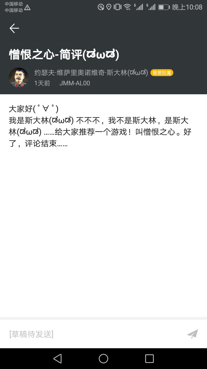 我是斯大林(ಡωಡ) 不不不,我不是斯大林,是斯大林(ಡωಡ) ……给大家推荐一个游戏!叫憎恨之心。好了,评论结束……