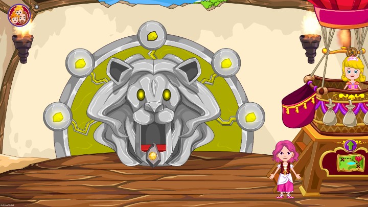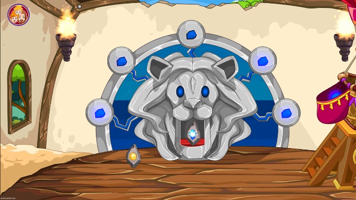 在这个巫师 里乘坐热气球,在地图上会出现一个狮子头,点进去后(见图),把宝石排进去后会出现一个东西(见图)