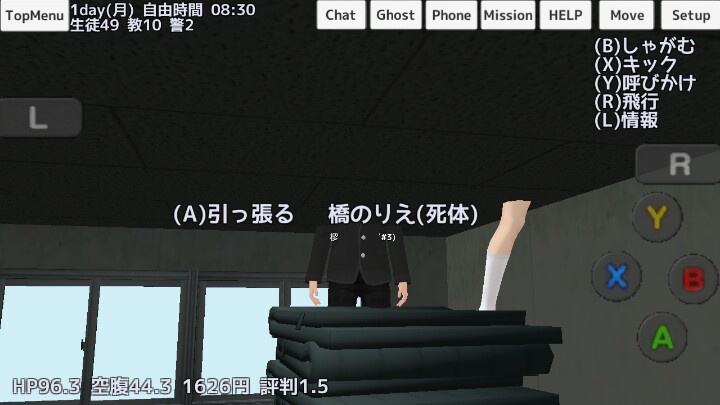 4.在那之后你就会发现你的衣服变成了男老师的衣服,而你却捡不了东西,动不了就算自杀,再让保健室老师把你救活也是碰不了东西的。