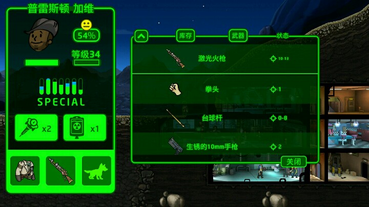 1.本次攻略主要是为了针对任务的,前期第一个任务做完后推荐先做有体育迷衣服的那个,推荐每关带3个针就好,后面可以选择做一些简单的小任务,接着做瓶瓶和盖盖的任务,第三关和第四关建议带多点药,最后一关boss伤害很高,注意血量,任务完成后瓶瓶盖盖和来你的避难所,在响起音乐的时候点跳舞的他们可以得到瓶盖。