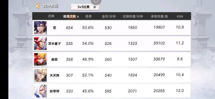 5.式神推荐:(这个就我的看法推荐一些式神,各位萌新宝宝再使用之后凭自己的喜好和上手程度进行自己的选择)