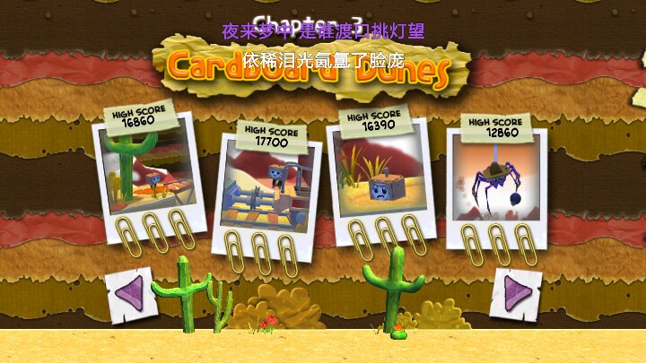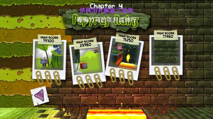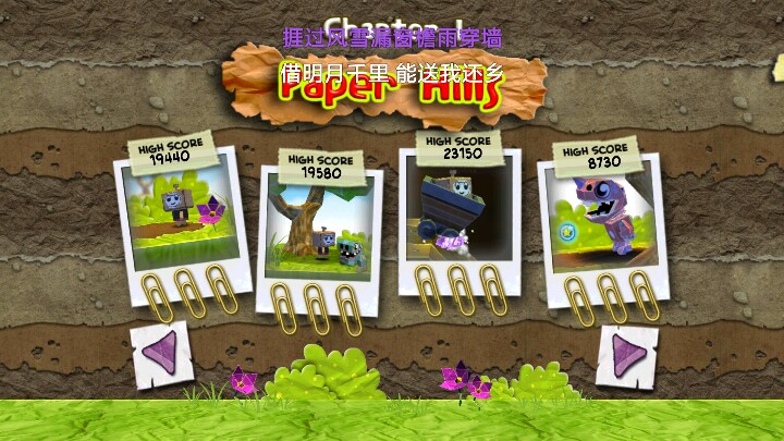 3.可玩性:★★★★☆(四星吧!简单的操作方式和唯美暖心的画风,再加上中等偏下的难度,成就了他的简单易玩易上瘾,虽然早已玩通关但还是舍不得删)