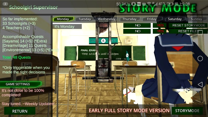 四:其实有一个地方。很恐怖。就是去老师办公室的下面,那里有个地下室,又黑又恐怖,bg m也很恐怖。只要你进去了,可能你会出不来的。那里太多房间像迷宫一样。有一次,我差点出不来了。地下室上面有一个教师办公室你不能从正门进去。那上锁了。钥匙好像可以问门前的两个小姐姐。她们应该知道。其实还有一个可以进去的方法。不过那里面全是锁,你可以绕到后门。然后开门进去。你发现那里还有一个上锁的玻璃门。有一次我卡进去了。然而里面有好几个老师。她们不会怎么样。。。靠门的教师办公室那里,第一个抽屉里面有很多糖。不知道是怎么用?我拿不到。应该是要解锁任务的。