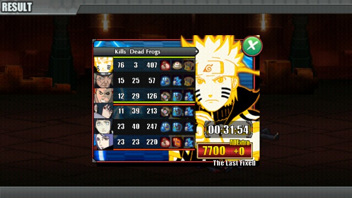 鸣人是一位非常强势的英雄,输出高,但大部分是用四五技能的伤害,所以需要大量的查克拉,那第一个装如果前期打的顺你可以出查克拉护腕,增加一下你的查克拉加成,如果不够经济就出个替身木防止死亡,锁链跟饭团配是很好的,这样的鸣人更肉,查克拉越多,加血更快!十分钟搞定不在话下。