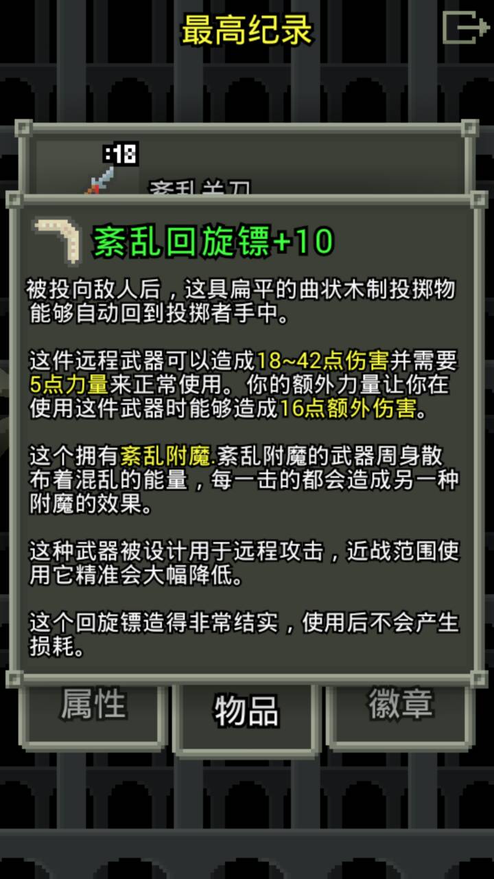 神射之戒这个版本很强,可以加投掷武器的攻击和耐久,而且加成伤害很高(见下图),前期扔几下就死一个怪。可以说,怪根本无法近身(会被近身纯属个人操作问题・_・)。前期一直苟,苟到打过天狗转职狙击手后直接发达,再加上六级(最少)神射之戒,矿场基本吊打,高伤害,射速快,而且有破甲,基本两个投矛死一只怪。后期20+的楼层主要靠高阶投掷武器:三叉戟、飞斧、投掷锤……