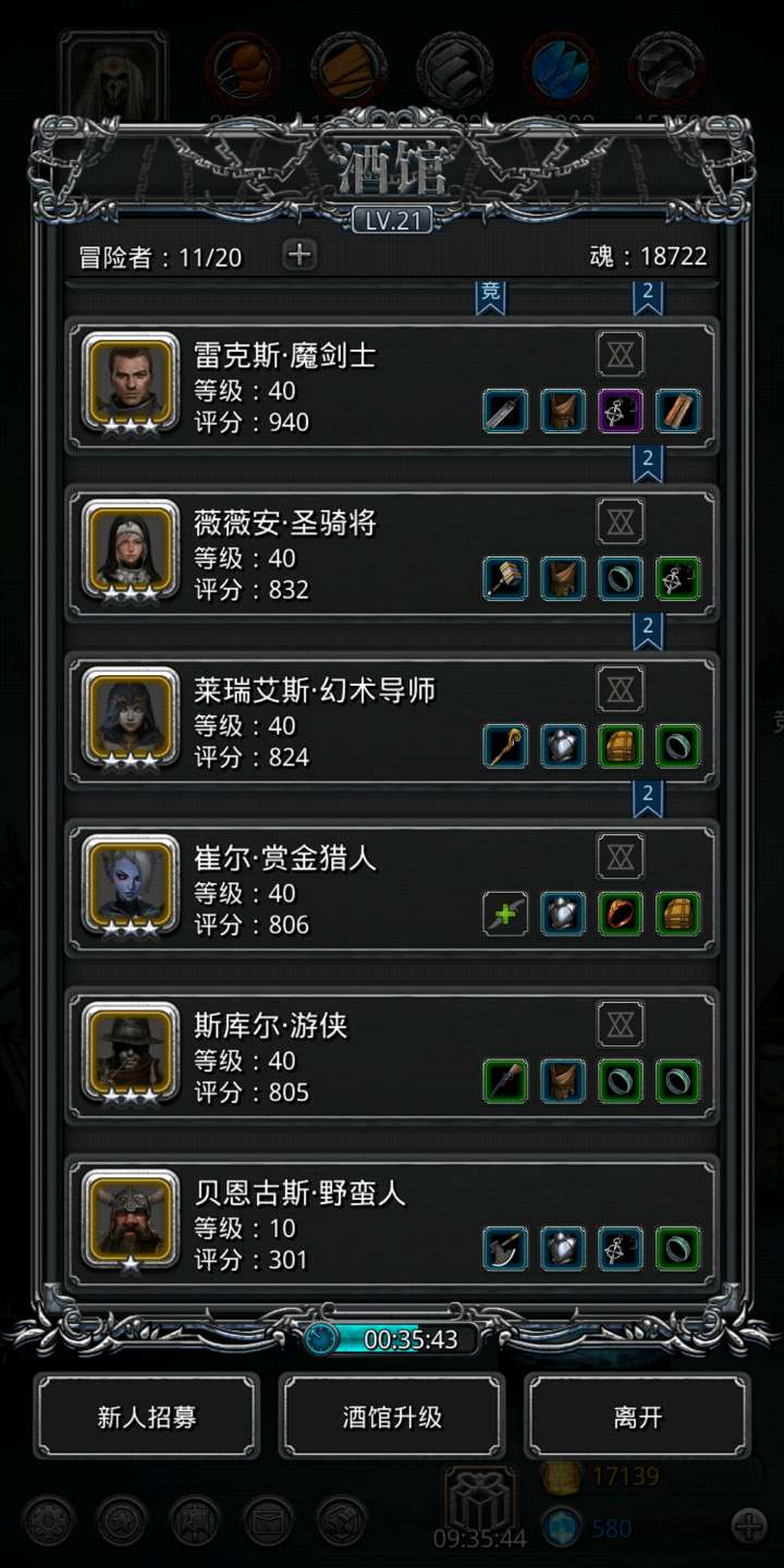 个人经验,到后期主要的角色,烈抢侠 破甲,配合狂战神的高超伤害 简直爆炸,极限伤害要破两万,这个组合我大部分任务都用。然后骑士圣光贤者是必不可少的,群体回血是次要,关键是带来大量抗性 ,对付boss时候只用堆积护甲再来黑骑士,嘲讽加装备一共500的护甲基本所有物理类boss都有效单体恢复我用的大巫医,虽然不如圣骑士奶量大,但是回春后续效果很强,当然圣骑士我也用的,骑士的加护甲效果也是很强法师的群体恢复加技巧,不少时候也用的上,特别是后期遗迹不需要加抗性的时候,而且初期的输出与治疗用处都很大,后期也不会没用建议不花钱的朋友从这些起手,毕竟资源累计还是很慢的