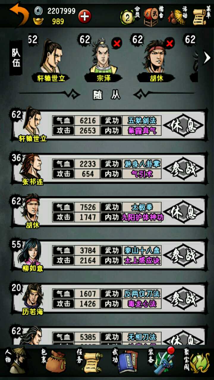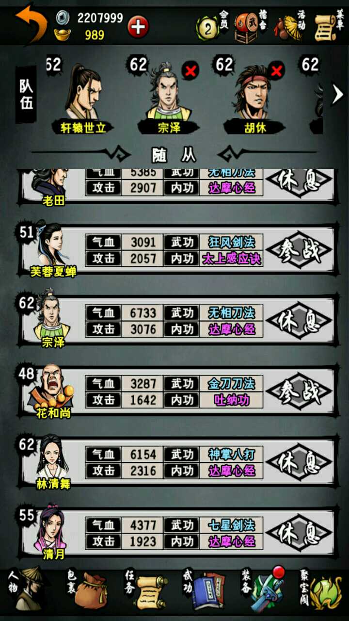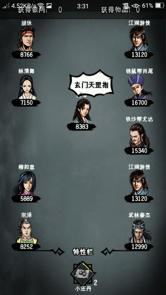本人主线到成都扬先生。地宫只到默君。紫霞只拿了一本。好了直接进入主题。这游戏要玩到后期很难。我们要选男主角。职业刀。人生目标选武功。最后平民。先说成员的选择。最多血量的胡修,补师如意,江湖第一人宗泽,刀客老田,第一控场竹心和成长值都不错的清舞。武功方面。主角,宗泽和老田用无相刀法。如意五狱。胡修寒冷。竹心大阴阳手。清舞铁掌功(最后七绝拳)。内功方面,紫霞两本一定要拿!一本给主角,一本给老田,九阳给胡修,其他人都用达摩。装备方面,主角和老田用无相刀(造速度)。泽用非攻刀(造吸血)。如意东瀛剑(造格挡)。胡修、竹心和清舞用玄蛇(造免伤)。衣服全部都用金刚咖沙。护腕都用赤文。 戒指用寒冰。其他的通通都不要用。免伤才是最实际的!希望对大家有帮忙。