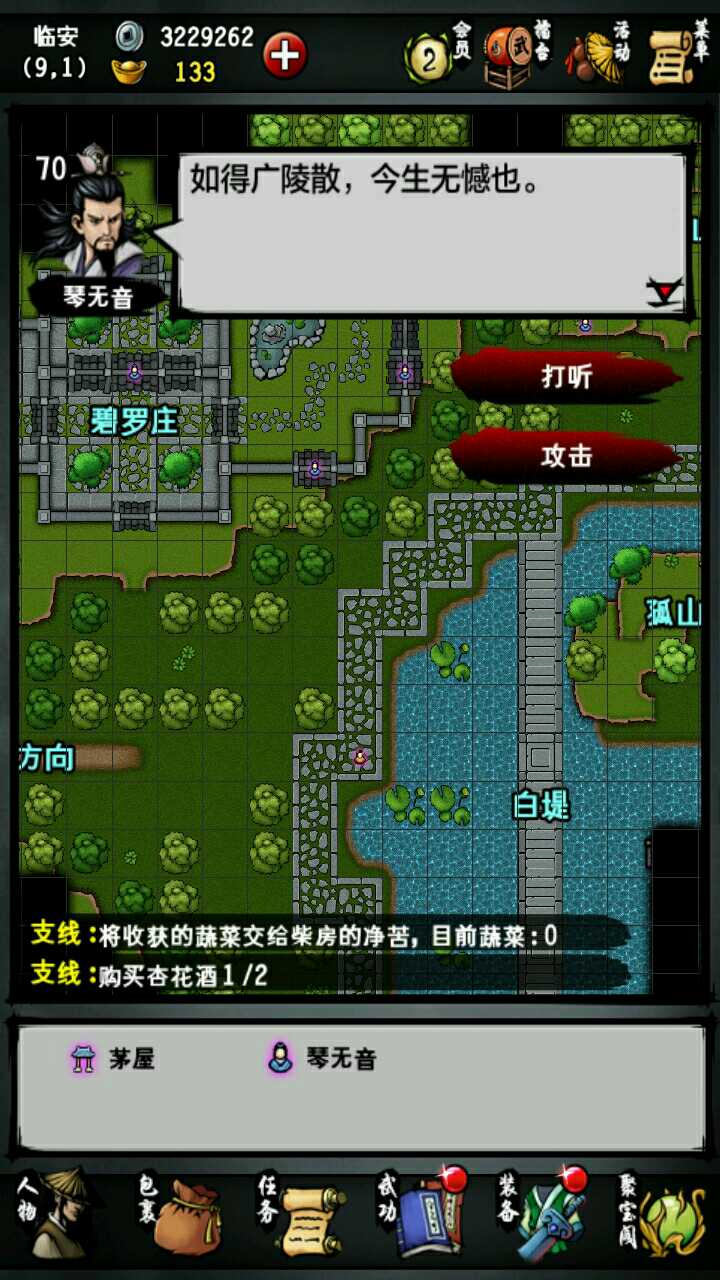 本人主线到成都扬先生。地宫只到默君。紫霞只拿了一本。好了直接进入主题。这游戏要玩到后期很难。我们要选男主角。职业刀。人生目标选武功。最后平民。先说成员的选择。最多血量的胡修,补师如意,江湖第一人宗泽,刀客老田,第一控场竹心和成长值都不错的清舞。武功方面。主角,宗泽和老田用无相刀法。如意五狱。胡修寒冷。竹心大阴阳手。清舞铁掌功(最后七绝拳)。内功方面,紫霞两本一定要拿!一本给主角,一本给老田,九阳给胡修,其他人都用达摩。装备方面,主角和老田用无相刀(造速度)。泽用非攻刀(造吸血)。如意东瀛剑(造格挡)。胡修、竹心和清舞用玄蛇(造免伤)。衣服全部都用金刚咖沙。护腕都用赤文。 戒指用寒冰。其他的通通都不要用。免伤才是最实际的!希望对大家有帮忙。