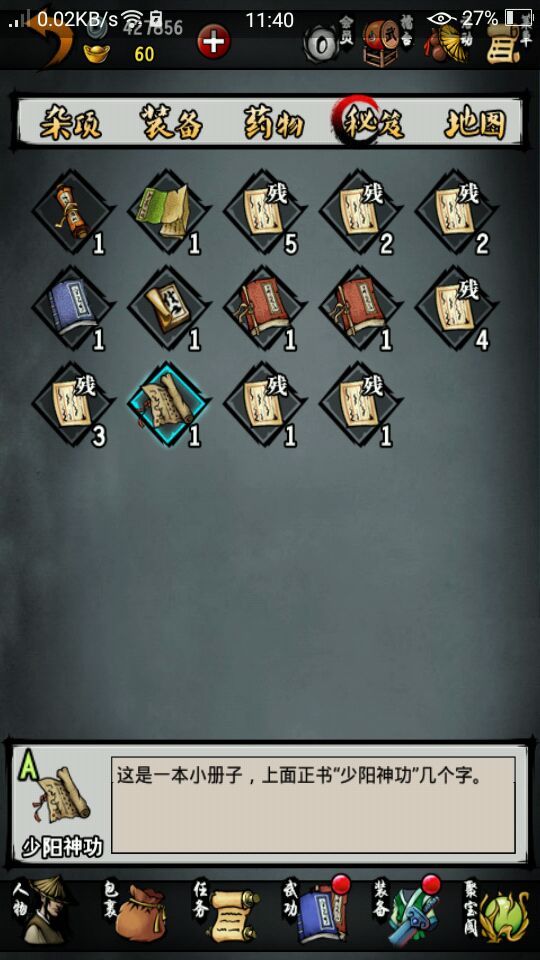 嗯。拿到九阳才是坑,每升3重都要在参悟100点。又要300点。到9重要等级65,吃9个阳炎丹,主角要学少阳神功。