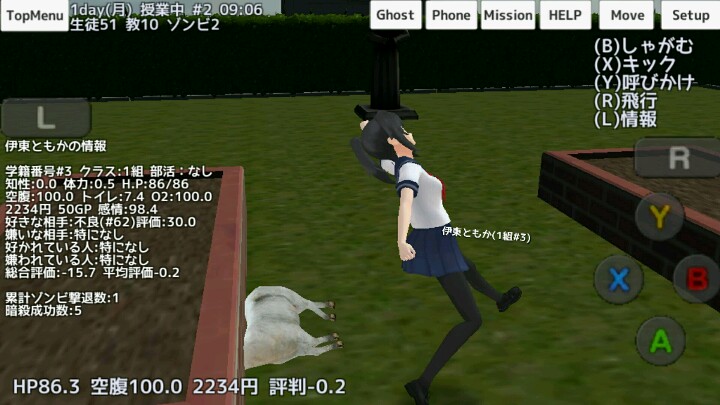 先给NPC一个武器,如果是小刀的话放到他的书箱里,然后自己拿把武器,一定要把武器格纳起来(先点A在点R),把那个人抱到地下室,先踢他一下(不要回旋踢)他就会用武器打你,然后你们两个比武,看谁更厉害,反正我给汤山一个武器(武士刀)我的HP值就0.8了,突然感觉汤山好厉害,可能是武器的事吧,我用棒球棒打他,我一下就打死了,你们可以试一试,警察不行,女生我还没试,你们可以试一试,可能女生不会打你,我打汤山的时候她一边打我一边说要告老师,你说这人484撒?警察是一定不行,他会用枪打你,逮捕你,老师也不行,直接逮捕你,我就是看谁不顺眼我就打谁,黑川我可舍不得打,剩下的你们慢慢体会吧~尽量给杀伤力小的,不过呢,我觉得你和NPC用一样的武器好,棒球棒杀伤力太大了,用小刀试试(汤山竟然敢打美女)『白眼』『白眼』