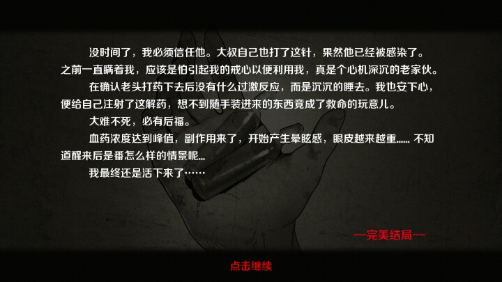 玩起来挺上瘾的,因为这是一个24小关组成的一局,结局很多,但我只解锁了两个悲惨结局