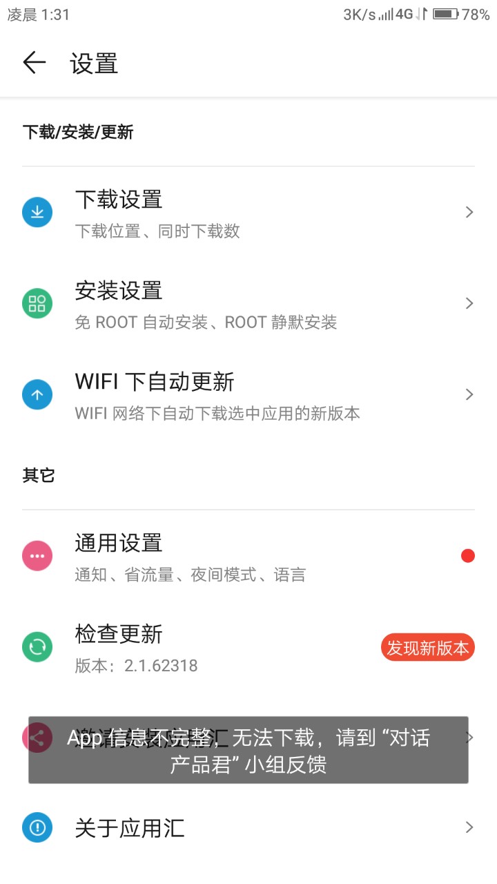 2018-06-28 [有回复] ZUK Z2131应用汇更新不了,一直显示app信息不足