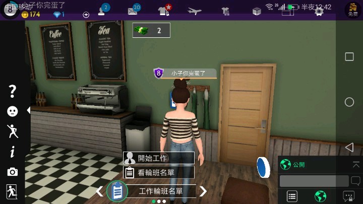 第四个飞机标志可以去各个场景邀请人玩,日落俱乐部和咖啡馆是可以工作的地方,其中咖啡馆能遇到中国人多