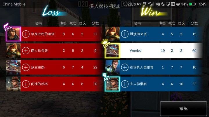 下面当然还要说一说我的光辉战绩啦,最好的是17K-0D-2A,当时三个队友加起来一共杀了6个,还各自送了7个人头,最后对面21杀不敌我们,我们险胜。而一般情况下,是一局10杀左右,2跪,2助攻,可能我会慢慢地把用双剑掉的K/D拉上去吧。