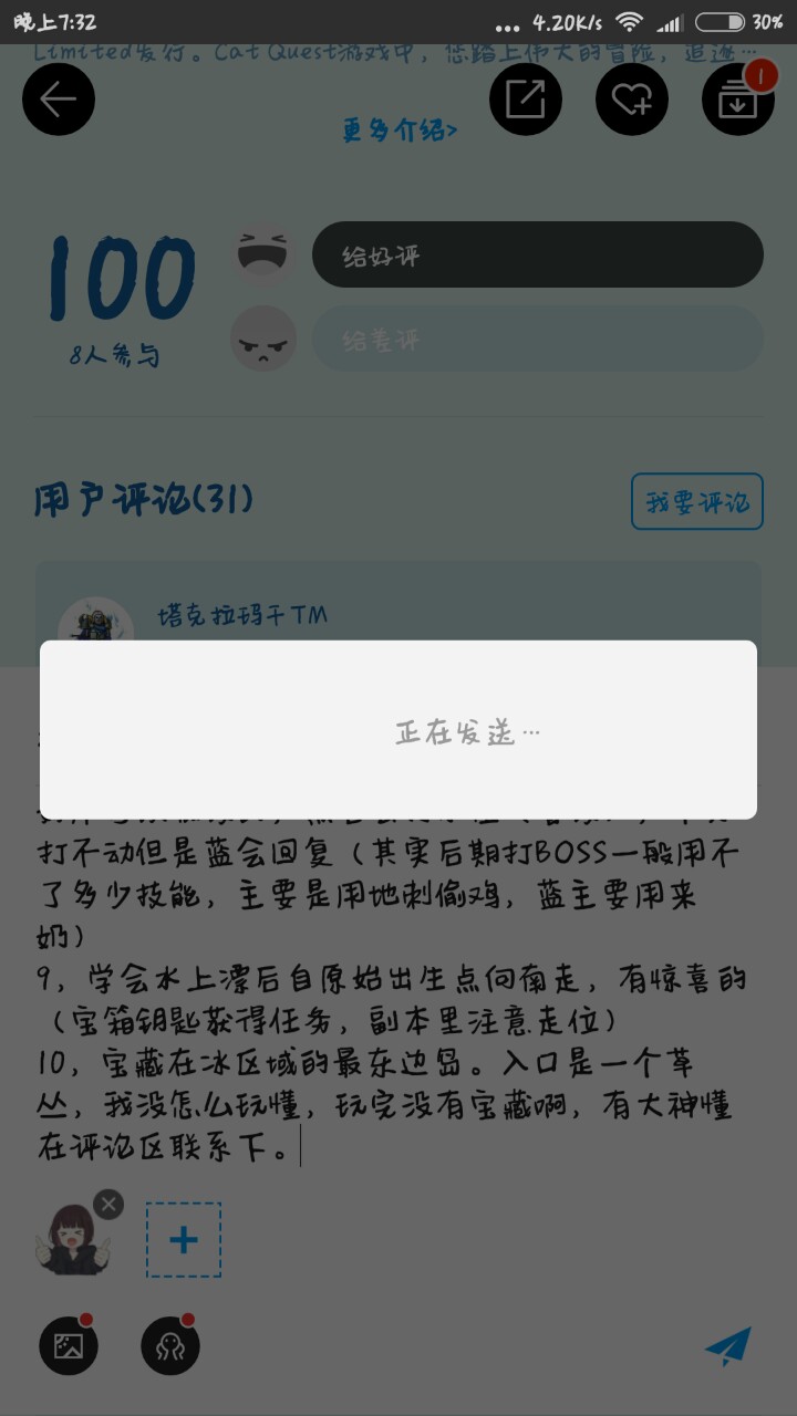 作为一个不满足于只玩游戏的我想问,评论字数有限制吗,为什么我的一些评论发不出去。(欢欢喜喜打了半天字,点击发送加载圆圈转了转就下去了,然后啥都没有,评论还是编辑模式没有发出去)